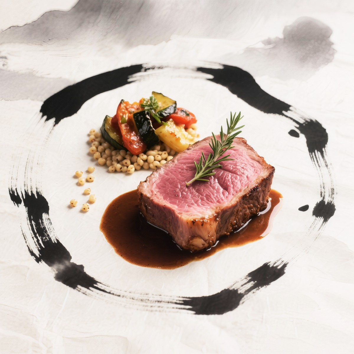 Madeira-Thymian-Soße · Ratatouille-Pastete · Fregola Sarda