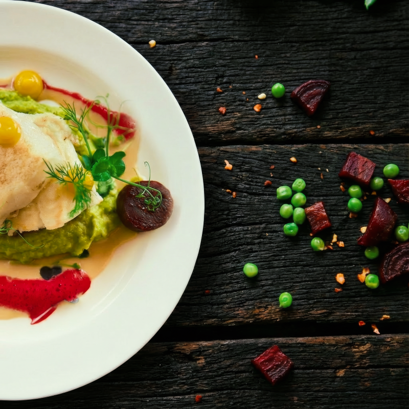 Rote-Bete-Carpaccio · Bärlauch-Espuma · gepickelte Radieschen
